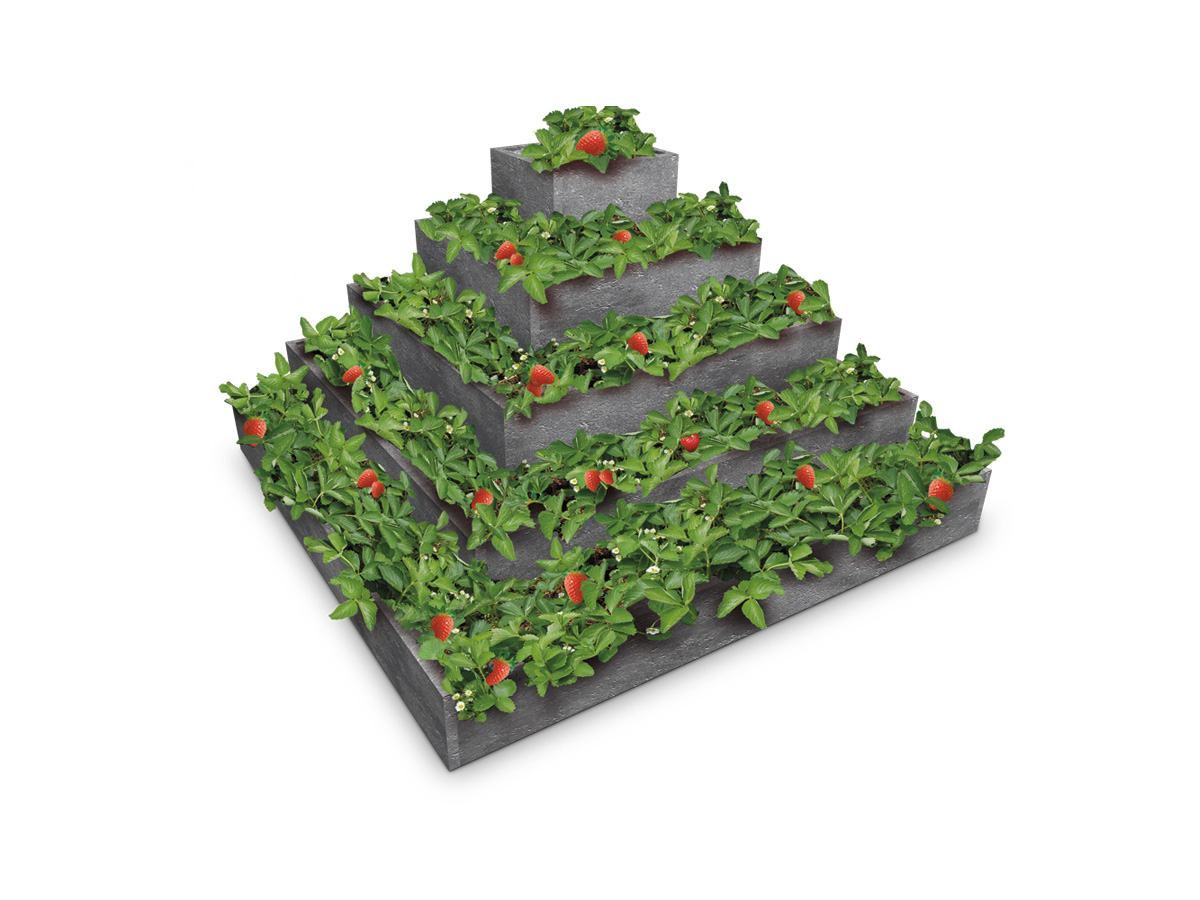 Zusätzlich die fünfstöckige Erdbeerpyramide in 2 x 2 x 1 m umweltfreundlich. Das verwendete Material besteht aus recyceltem Kunststoff. So können Sie leckere Erdbeeren genießen und schonen gleichzeitig die Umwelt.