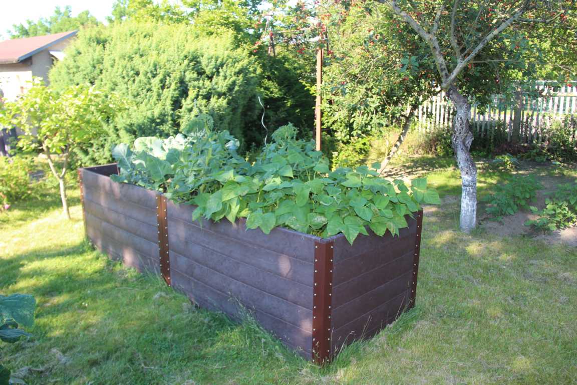 Dank der zwei Kammern können Sie zum Beispiel in der einen Kammer Blumen und in der anderen Kammer Kräuter anpflanzen. Nutzen Sie das Material für ein braunes Hochbeet mit den Maßen 200 x 106 x 81 cm optimal und züchten Sie herrliche Küchenzutaten. Das Material wurde aus Plastik, das im gelben Sack gesammelt wird, hergestellt. Dieses recycelte Material ist splitterfrei, frost- und winterbeständig.