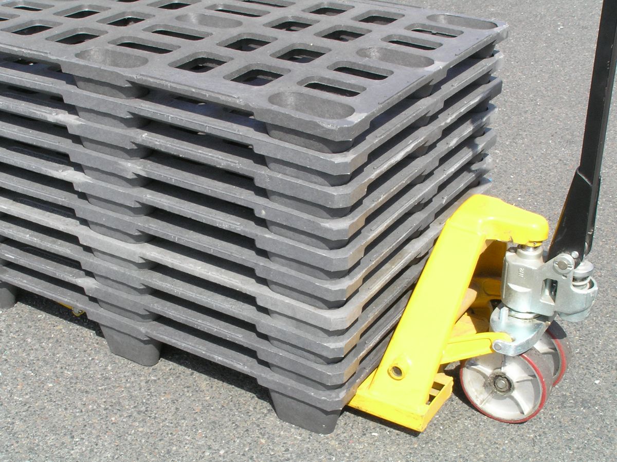 Kunststoffpaletten haben eine ausgezeichnete Beständigkeit gegen Witterungseinflüsse, Feuchtigkeit, Schimmel, Pilze, Parasiten und gängige Chemikalien. Sie nehmen keine Feuchtigkeit auf, haben eine leicht zu reinigende Oberfläche und erfordern auch langfristig keine Wartung. Da die Paletten wegen Ihrer Konstruktion ineinander passen sparen Sie bei Lagerung und Transport 40% des Raumes. Standardmäßig sind die Paletten in 2 Ausführungen erhältlich - glatt oder mit einer stabilisierenden Kante, die ein Verrutschen des Ladegutes von der Palette verhindert. Die Die Paletten bestehen aus einem kompakten Preßstück und daher weren sie auch nach häufigem Gebrauch nicht auseinanderfallen oder absplittern.